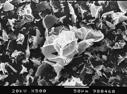 上2枚は急速加熱時に高度な燃焼管理をした場合に得られる本来のパーライト拡大写真です。