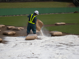 この様な性質のおかげで、ゴルフ場などではパーライトを混ぜただけで、芝生の根の張り方が向上し、水を撒いた場合、長く水分を保有し、それでいて肥料や農薬の効果を長期間保持します。また、ビル屋上緑化、街路樹など、パーライトの軽量効果や上記の特徴のおかげで、必要土壌量も少なく、それでいて軽く、水はけを含む環境整備と農薬散布などの運用面のメリットも多くある事から、商用ビルだけでは無く、一般住宅屋上緑化などでも使用が拡大しています。