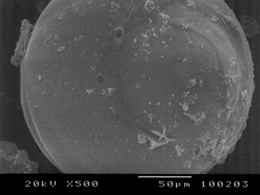 上2枚は急速加熱時に高度な燃焼管理をした場合に得られる本来のパーライト拡大写真です。